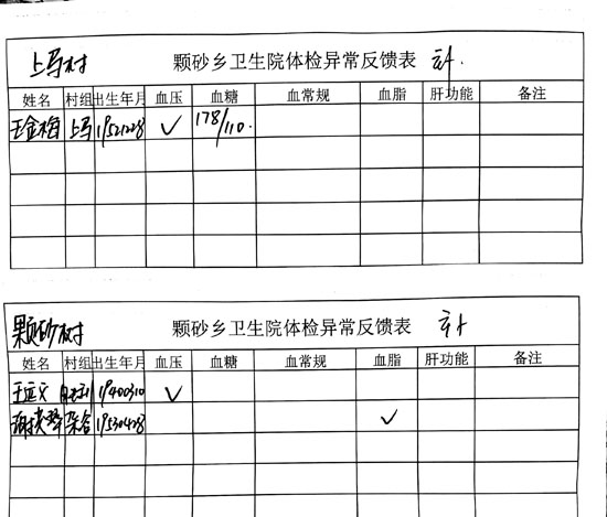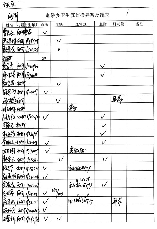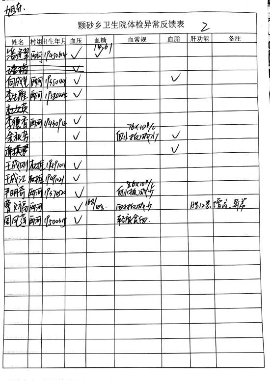 永顺县颗砂乡旭东村(两河、树竹)及部分补检查65岁以上老年人体检异常反馈