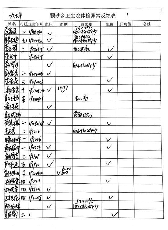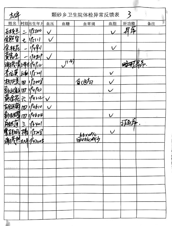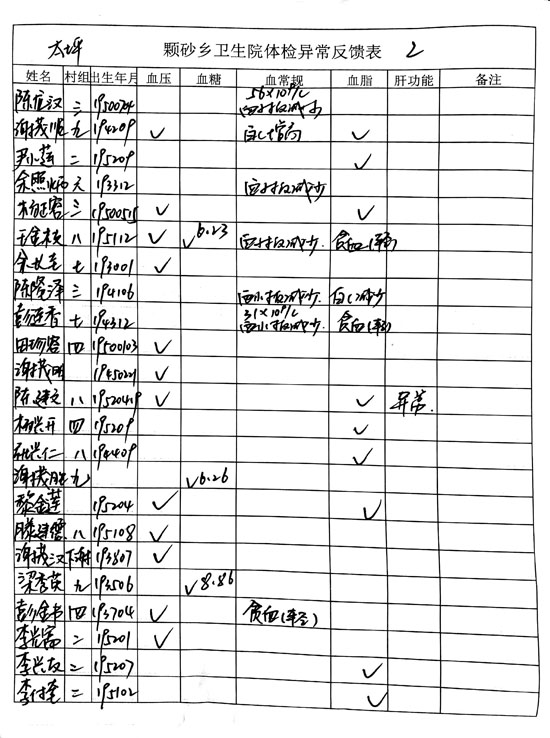 永顺县颗砂乡太坪村65岁以上老年人体检异常反馈